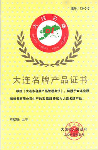 根據《大連市名牌產品管理辦法》,大連寶原核設備有限公司生產的“寶原牌格架”被確認為2014年大連名牌產品,有效期為三年。